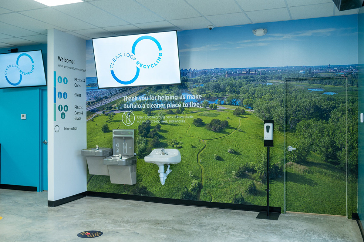 During my time in TOMRA I worked on designing several recycling centers, convention stands and show-rooms. One of these was the Clean Loop Center in Buffalo, New York. It's a brand-new center designed to create a clean, safe, and enjoyable recycling-experience.
